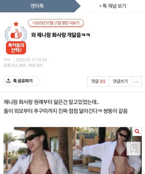 얘들아 저거 디시하는 제니팬이야.. 무조건 제니까글 올라오면 카리나 윈터로 복붙해서 그래도 올림. 못믿겠으면 디시 블랙핑크갤러리 가봐 진짜 제니팬들은 제니쳐맞으면 꼭 타돌 머리채잡음. 고소당해야됨 ㄹㅇ싸패단 패악질