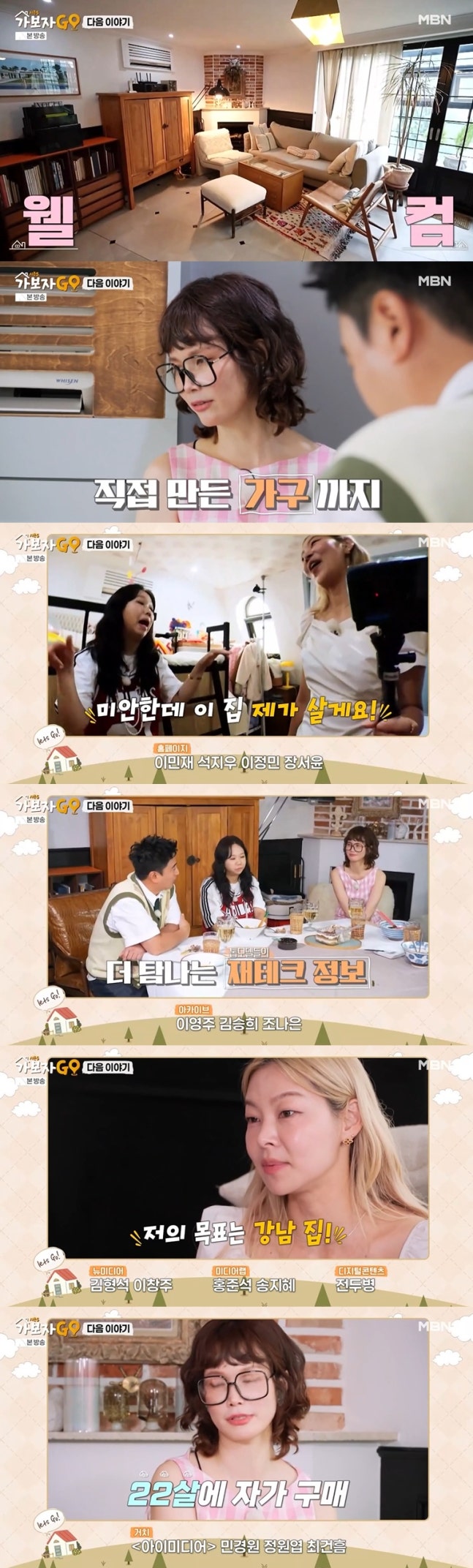 송경아는 그릇과 그림은 물론 가구까지 직접 만들었다고 밝히며 금손 면모를 자랑했다. 집을 둘러보던 홍현희는 급기야 "해나 씨. 미안한데 이 집 제가 사겠다"고 송해나와 경쟁하는 모습을 보였다.