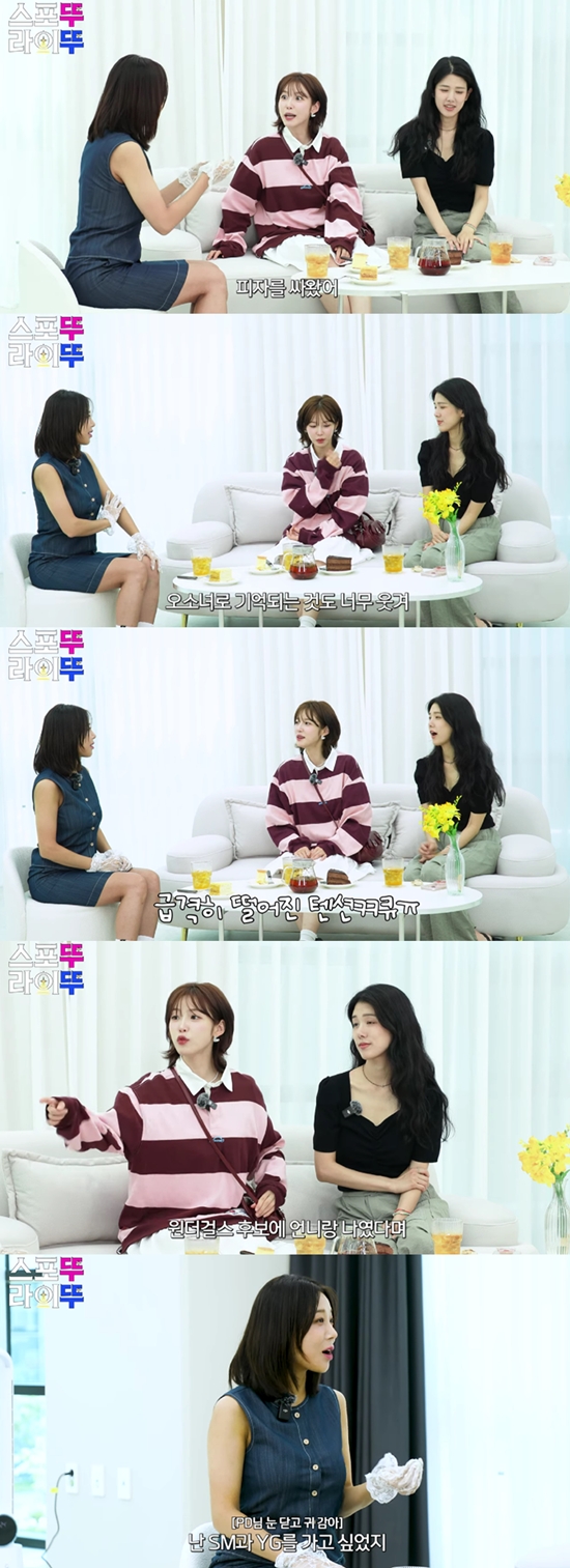 전효성이 "오소녀로 기억되는 것도 웃기다"라고 하자 유빈은 "회사가 힘들어져서 데뷔가 붕 뜨지 않았나. 각자 나부터 시작해서 뿔뿔이 흩어졌다"라며 원더걸스로 데뷔한 유빈, 애프터스쿨로 데뷔한 유이, 다른 회사 연습생이 된 양지원, 시크릿으로 데뷔하게 된 전효성의 비하인드를 풀었다.