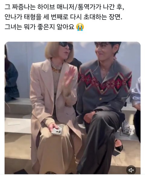 안나윈투어는 몇 년간 셀린느 행사에 오지 않았었고 셀린느는 몇 년 동안 보그에 실리지 않았대 근데 보그 전 편집장인 안나 윈투어가 몇 년만에 온 셀린느 행사에서 앰버서더인 뷔를 직접 초대한거임 셀린느한테도 좋은 기회고 뷔한테도 좋은 기회인거지 그때 일정 뭔지는 모르겠는데 가자 태형아