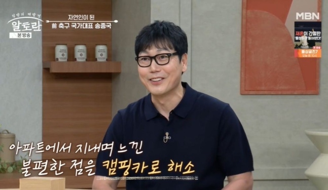 전 축구선수 송종국이 캠핑카 생활을 공개했다.