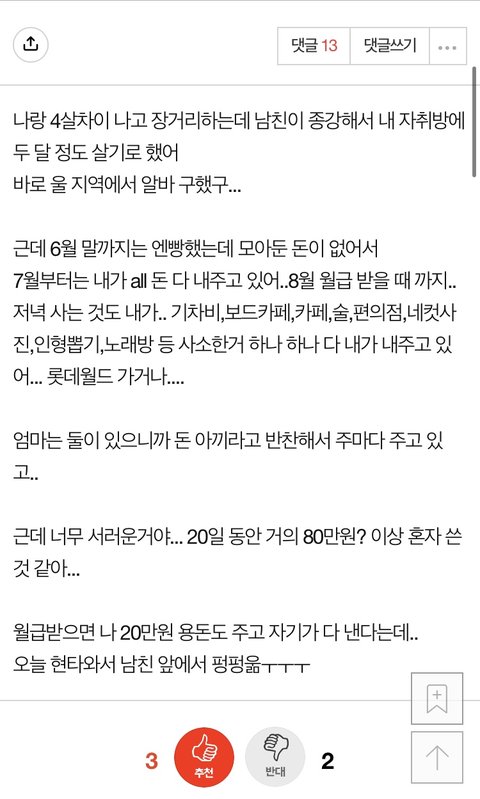 -돈 없는데 밖에서 데이트하느라 여자 혼자 데이트에 80씀