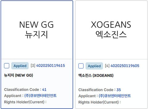 큐브 뉴지지, 엑소진스 상표권 출원