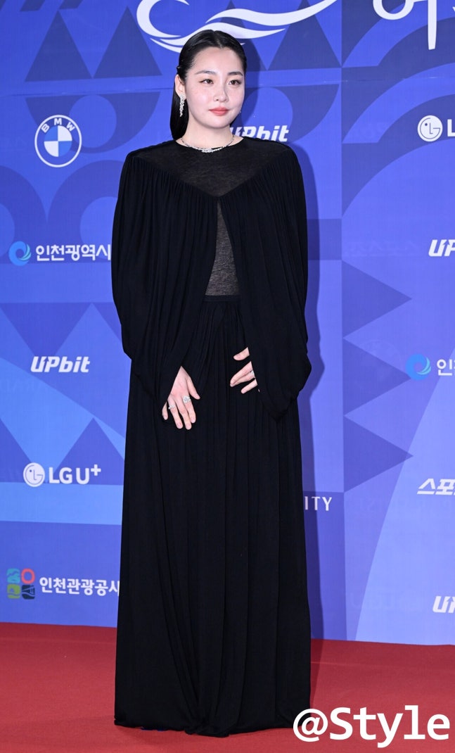 시크함을 노린 블랙 드레스였지만, 여러모로 아쉬운 선택이었다. 김민하가 택한 드레스는 넓게 퍼진 소매와 루즈한 핏이 체형을 전혀 살리지 못했고, 상체 실루엣이 완전히 뭉개진 탓에 답답한 인상을 줬다. 망토처럼 떨어지는 천은 드레스인지 케이프인지 애매하기만 하다. 소재와 스타일링 모두 계절감과도 동떨어져 있었다. 콘셉트와 완성도 모두 아쉽게 빗나간 워스트 룩이다.