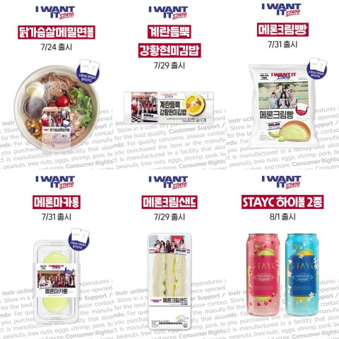 닭가슴살메밀볼면, 스리라차마요포케, 계란듬뿍강황현미김밥, 메론크림샌드, 메론크림빵, 메로마카롱, 하이볼2종