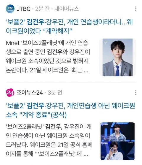일반인으로 출연했는데 알고보니까 웨이크원(엠넷소속사) 소속이었고 이걸 기사로 인정함 참고로 김건우 강우진이 일반인 타이틀걸고 분량 제일 많았음.
