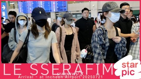 그룹 르세라핌(LE SSERAFIM) 허윤진, 카즈하, 사쿠라, 홍은채, 김채원이 대만 '2025 LE SSERAFIM TOUR 'EASY CRAZY HOT' IN ASIA' 공연을 마치고 21일 오후 인천국제공항을 통해 입국하고 있다. 2025.07.21