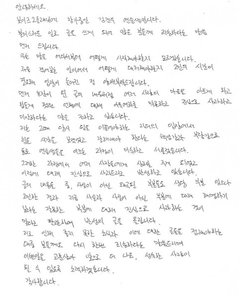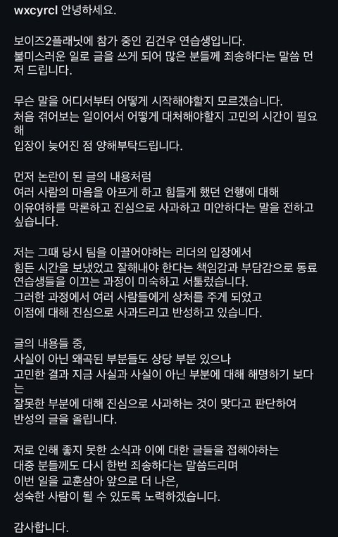 보플2 한국 센터 김건우 사과문