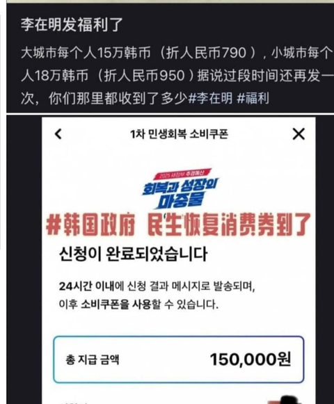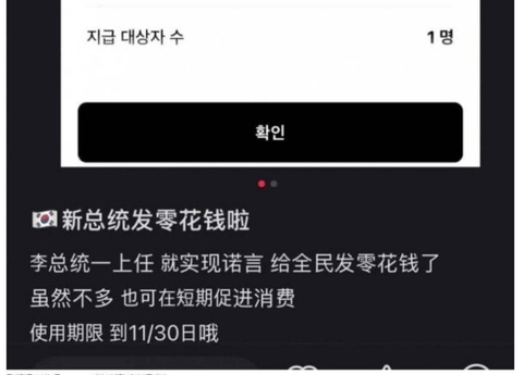 중국인들도 소비쿠폰 받나보네요.