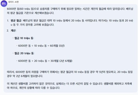 베트남 월급이 10trieu. 그럼 6개월 아닌가요??