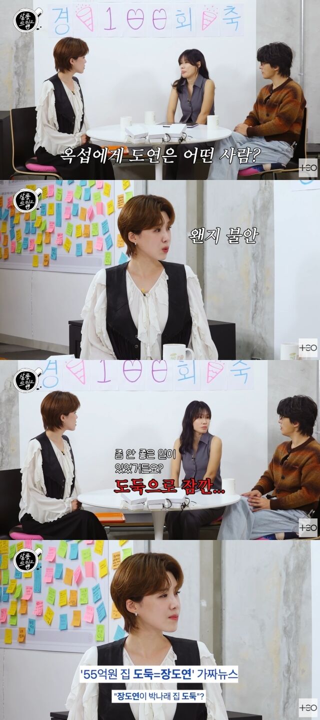 유튜브 채널 'TEO 테오'/유튜브 채널 'TEO 테오' 영상 캡처한편 지난 4월 박나래는 서울 용산구 이태원동 소재 55억 자택에 고가의 귀금속, 가방 등 수천만 원 상당의 물품이 도난되는 피해를 입었다. 사건 초기 외부 침입 흔적이 없었다는 오보 탓에 박나래 지인의 소행이라는 추측이 제기되기도 했다. 이 가운데 장도연이 범인이라는 가짜뉴스도 확산됐다.