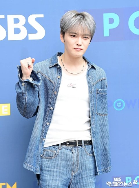 이날 생방송에 참석한 가수 김재중이 출근길에 포즈를 취하고 있다.