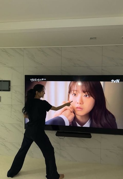 공개된 사진에는 거실에서 '견우와 선녀'를 시청 중인 조이현의 모습이 담겨있다. 널찍한 거실과 조이현의 깜찍한 포즈가 시선을 사로잡는다.