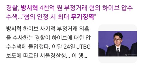 방시혁 혐의 인정시 최대 무기징역 ㄷㄷ..