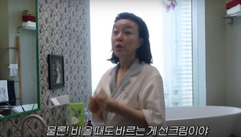 최화정은 아침에 일어나면 무조건 물로 세안 후 스킨과 선크림을 바른다고.... ㅎㄷㄷㄷ