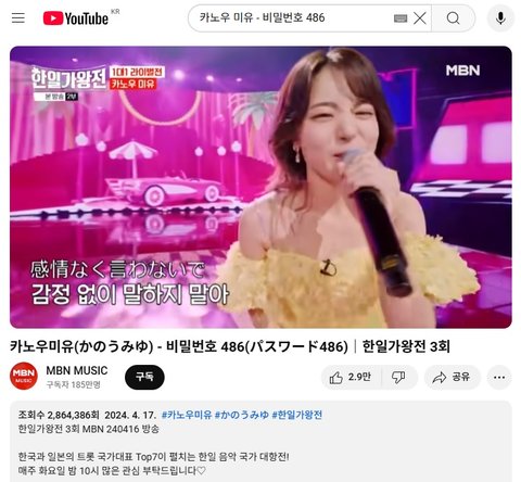 (사진2 설명) 카노우미유(かのうみゆ) - 비밀번호 486(パスワード486)|한일가왕전 3회