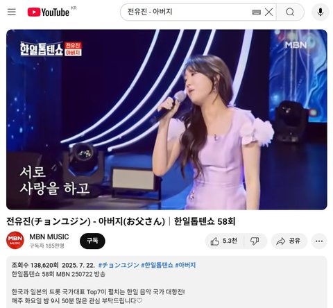 (사진8 설명) 전유진(チョンユジン) - 아버지(お父さん)|한일톱텐쇼 58회