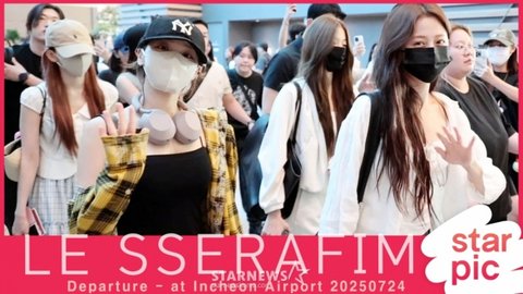 그룹 르세라핌(LE SSERAFIM) 허윤진, 카즈하, 사쿠라, 홍은채, 김채원이 홍콩 '2025 LE SSERAFIM TOUR 'EASY CRAZY HOT' IN ASIA' 공연 차 24일 오전 인천국제공항을 통해 출국하고 있다. 2025.07.24