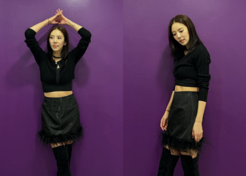 공개된 사진에는 크롭 니트에 퍼가 달린 스커트, 스웨이드 롱부츠를 신은 손담비의 모습이 담겼다. 그는 머리부터 발끝까지 올블랙 착장으로 시크한 매력을 더했다.