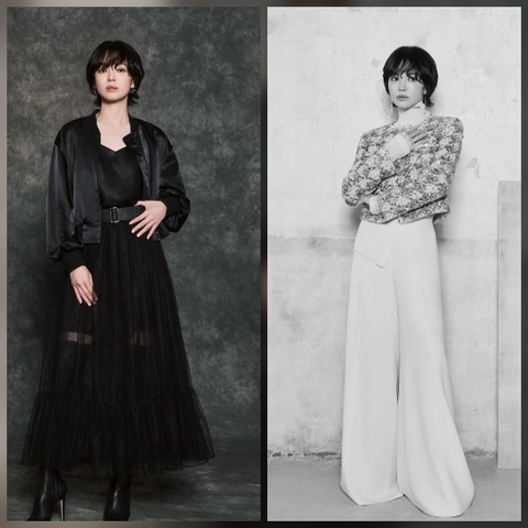 첫 번째 컷에서는 차콜톤 플레어 드레스를 입고 단단한 표정으로 포즈를 취했다. 프릴 디테일이 살아 있는 니트 상의와 가죽 벨트, 날렵한 힐까지 더해져 구조적인 실루엣이 완성됐다. 배경의 러프한 콘크리트 질감과 어우러져 송혜교의 고요한 시선이 더욱 부각됐다.이어진 컷에서는 흑백 대비가 돋보이는 플라워 재킷과 와이드 팬츠를 매치했다. 한 손은 가슴에, 다른 손은 허리에 닿은 포즈로 차분한 카리스마를 선보였고, 단발 헤어는 전체 룩에 세련미를 더했다.