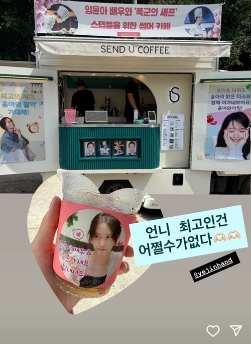 24일 윤아는 자신의 SNS에 “언니 최고인 건 어쩔 수가 없다”는 문구와 함께 커피차 인증샷을 공개했다.