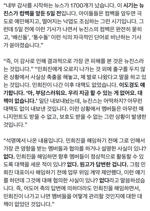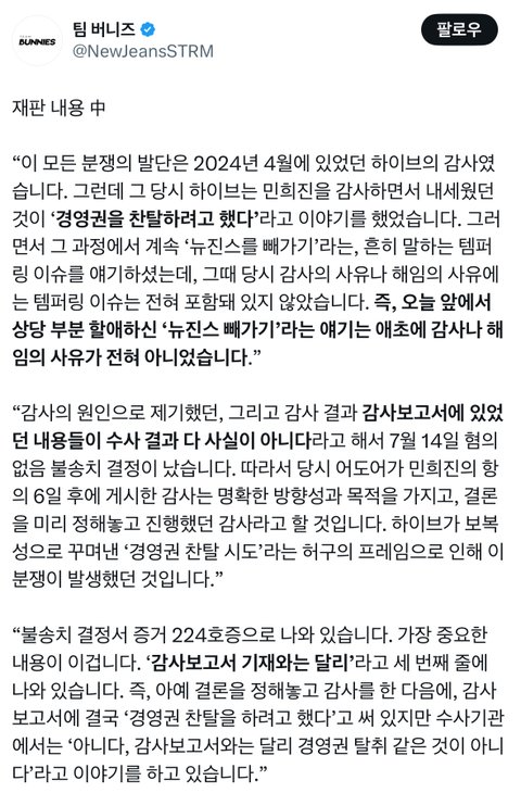 팀버니즈에서 세종 뉴진스측 변론 내용 전체공개했네