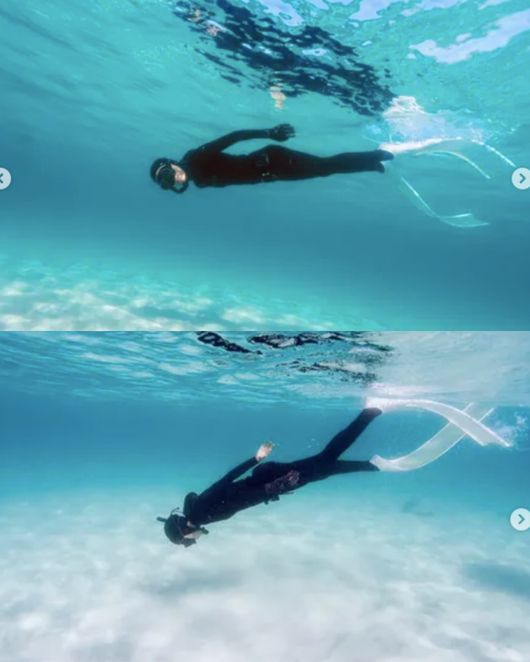 25일 김희애는 자신의 계정에 “오늘은 바다 속 시야가 좋아서 물고기 구경 많이 한 날”이라는 글과 함께 여러 장의 사진을 게재했다.