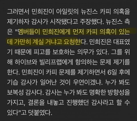 민희진 주장도 아니고 뉴진스측 주장이라서 나중가서 발뺌도 못하겠네ㅋㅋㅋㅋ 고기방패 열심히 해라ㅋㅋ