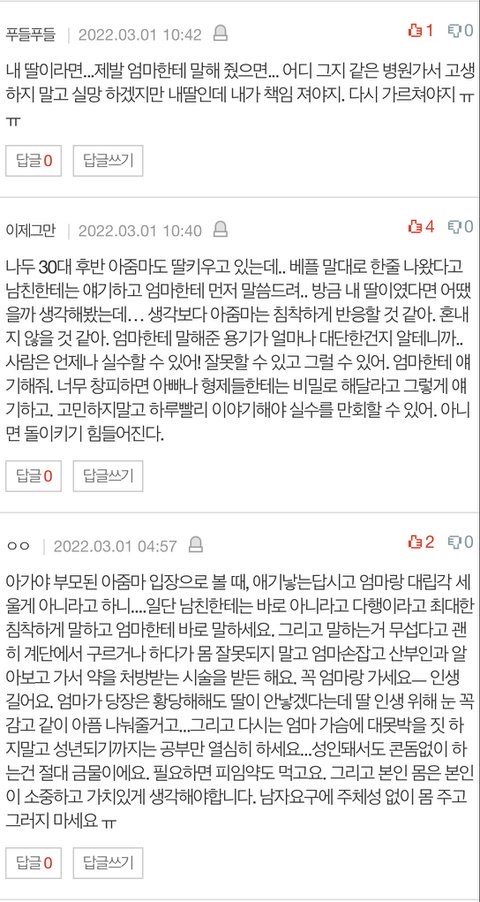남친한테는 말하지도말고 무조건 엄마한테만 말해