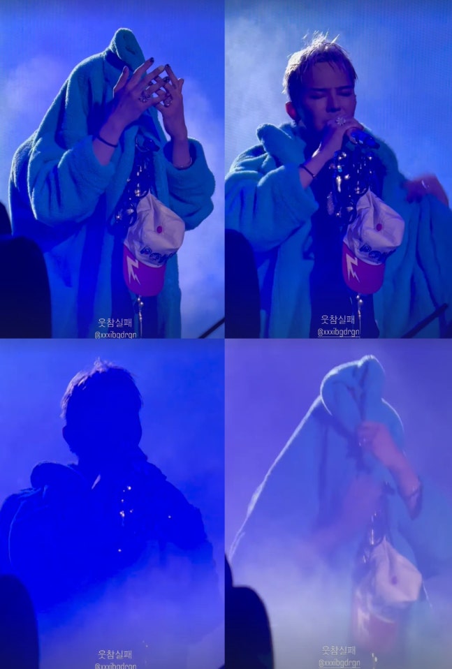 영상 속 지드래곤은 무대 위에서 두꺼운 털 자켓을 머리 끝까지 뒤집어 쓴 채 '무제(無題) (Untitled, 2014)' 라이브를 하고 있어 눈길을 끈다.