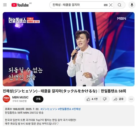 (사진1 설명) 진해성(ジンヒェソン) - 태클을 걸지마(タックルをかけるな)|한일톱텐쇼 58회