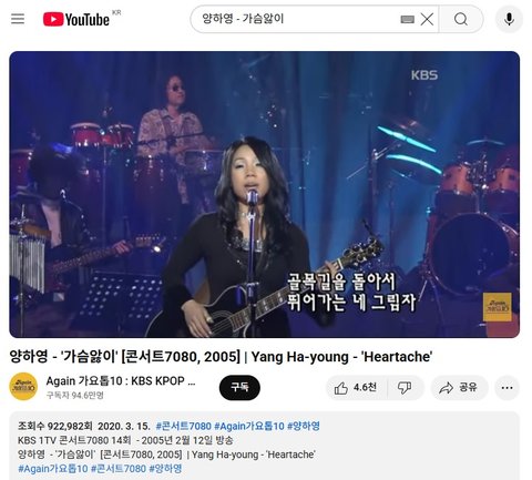(사진4 설명) 양하영 - 가슴앓이 [콘서트7080, 2005]