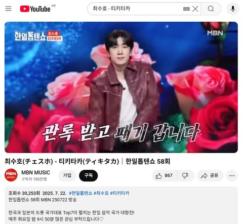 (사진6 설명) 최수호(チェスホ) - 티키타카(ティキタカ)|한일톱텐쇼 58회