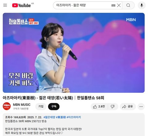 (사진7 설명) 아즈마아키(東亜樹) - 젊은 태양(若い太陽)|한일톱텐쇼 58회