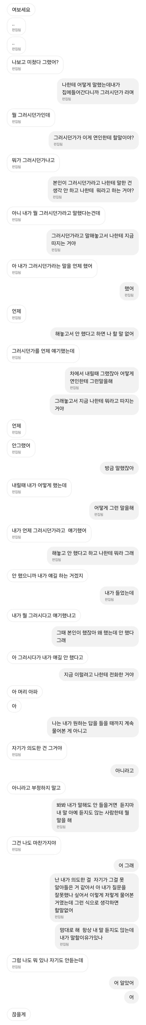 밑에는 싸우고 집에들어왔는데 남친이 저나해서 대화한 내용입니다