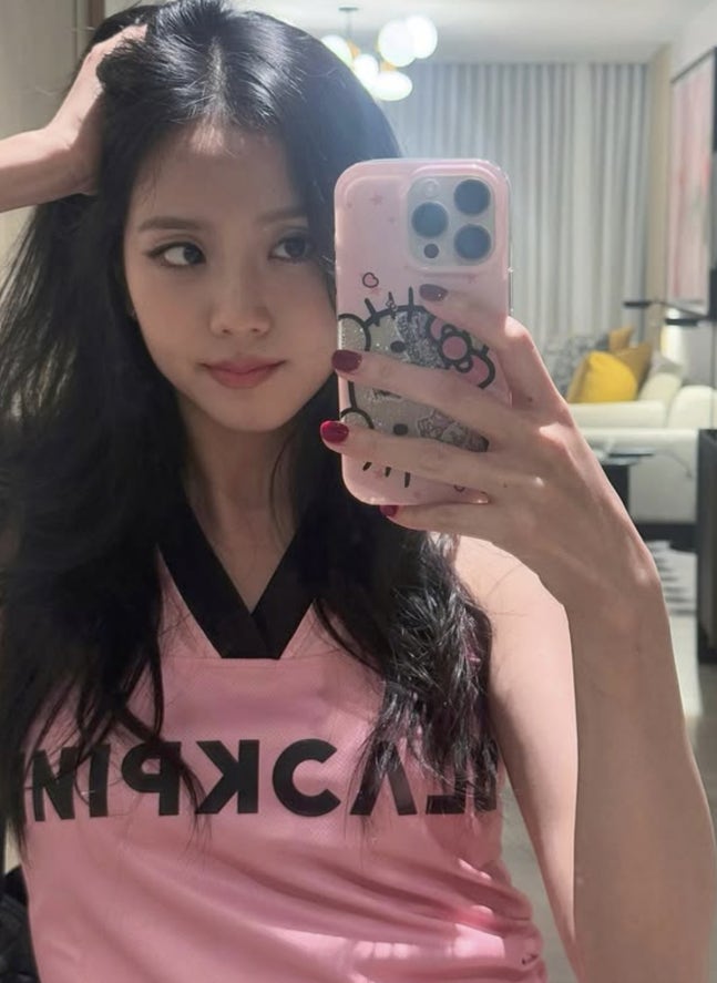 /사진=지수SNS공개된 사진 속 지수는 로제와 셀카를 찍으며 다정한 케미를 뽐냈다. 특히 로제는 지수 뒤에서 입을 벌리고 초점을 잃은 듯한 귀여운 포즈를 취해 팬들을 미소 짓게 했다. 제니와는 무대 의상을 입은 채 공연 직전 찍은 듯한 사진에서 똑같이 뛰는 포즈로 발랄한 분위기를 연출했다.또 대기실에서 찍은 리사와의 사진에서는 리사가 지수의 머리를 깨물 듯한 익살스러운 포즈를 취했고, 지수는 새침한 브이 포즈로 웃음을 자아냈다. 이 외에도 헬로키티 휴대폰 케이스를 든 채 분홍색 옷을 입은 거울 셀카, 더위를 식히듯 빨대로 냉수를 마시는 모습 등 다양한 매력이 담겼다.
