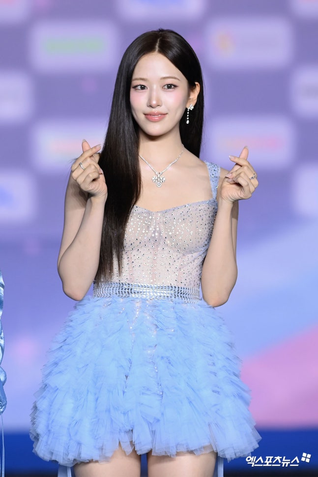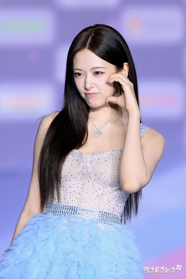 그룹 아이브(IVE) 안유진이 블루카펫 행사에 참석해 포토타임을 갖고 있다.