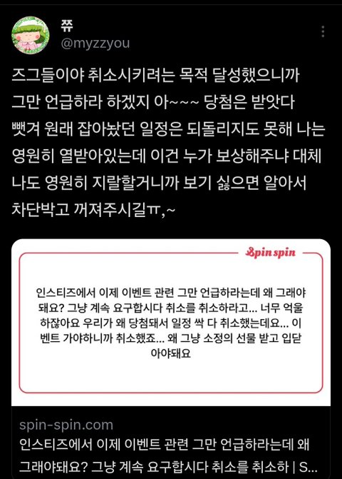 보플 끝나고도 중국 언냐들이 존내 관심 줬어서 회사만 잘 만났어도 충분히 뜰 수 있었는데 ㅈ같은 소속사 만나서 가라앉음 ㅠ 무엇보다 최대 찍덕이랑 최대 넴드는 탈주했고