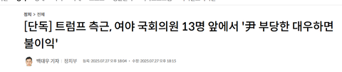 [단독] 트럼프 측근, 여야 국회의원 13명 앞에서 '尹 부당한 대우하면 불이익'