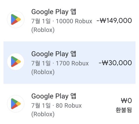 애들 핸드폰에 플레이스토어를 제 이름으로 해줘서 핸드폰을 쓰고 있어요 요즘 애들 사이에서 로블록스 라는 게임이 유행인가봐요 한번 충전을 해달라고 해서 생일에 한번 충전 해준적이 있습니다 그걸로 옷도사고 캐릭터 꾸미는건가 보더라구요 물론 여자 애기도 마찬가지로 한번 해줬습니다.