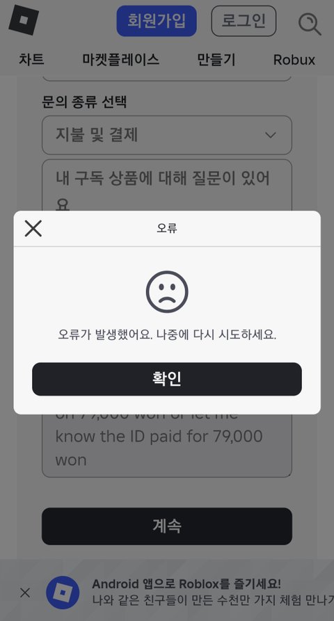 기껏 문의글 번역해서 쓰면 오류났다 하고 정말 어처구니가 없네요 로블록스