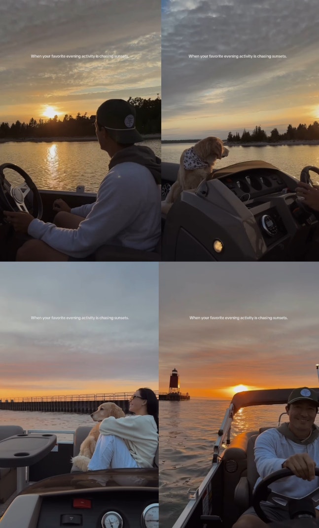 럭셔리한 요트를 직접 운전하는 다니엘 헤니를 촬영한 루 쿠마가이는 반려견과 의자에 앉아 풍경을 구경하며 평화로운 하루를 보내고 있다. 아름다운 노을과 풍경이 감탄을 자아낸다.