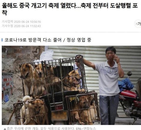 중국 개고기 축제인데 매년 개최된다고 함. 한국에서 이제 개고기 불법이라 중국 가서 한그릇 하고 오는듯.