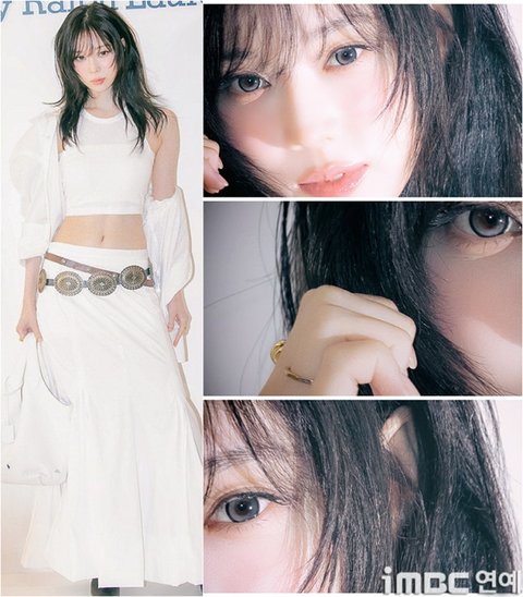 가끔 그런 날이 있다. '헤.메.코'가 윈터와 딱 떨어지며 완벽한 판타지가 완성되는 날. 이날 윈터는 '라떼 샤기컷'이 떠오르는 시스루 뱅 스타일의 앞머리와 커팅. 자연스럽게 늘어트린 헤어가 단연 돋보였다. 여기에 엘프가 떠오르는 윈터의 귀 모양과 푸른 렌즈 또한 신비로움을 한껏 높였다.