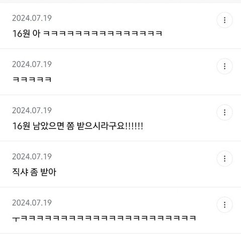 잔고가 16원인데 커피값 보내줌