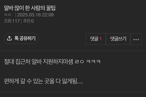 어렸을 때부터 집 주변에 있는 자주 가던 음식점에서 알바했다가 일 너무 못해서 잘렸는데 그 후로 못가게 됨…