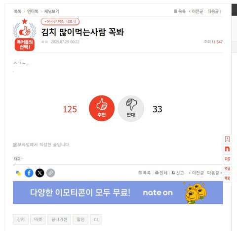 그 글에 댓글 쓰면 댓글은 또 금방 삭제돼버림..