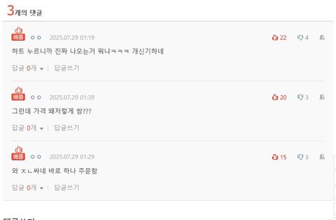 맨날 똑같은 내용의 댓글 3개가 베플임..