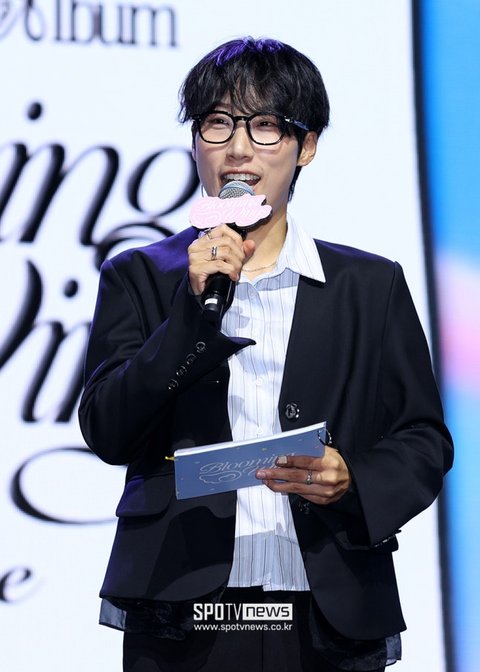 [스포티비뉴스=서울, 곽혜미 기자] 가수 최예나 네 번째 미니 앨범 'Blooming Wings(블루밍 윙스)' 발매 기념 쇼케이스가 29일 오후 서울 용산구 한남동 블루스퀘어에서 열렸다. 방송인 재재가 사회를 보고 있다.