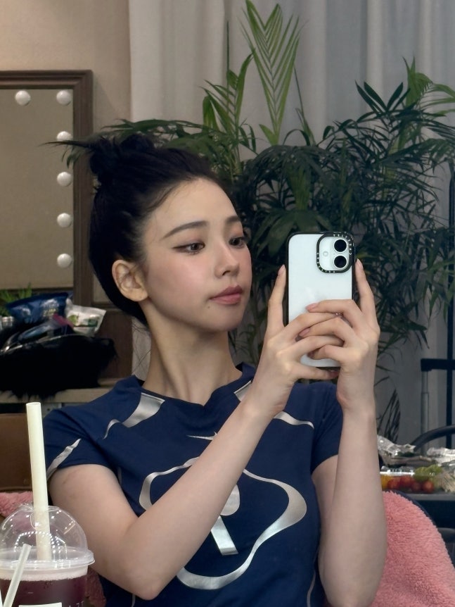 뿐만 아니라 태블릿으로 찍은 셀카, 머리를 하나로 올린 후 찍은 거울 셀카까지, 스타일링 차별화로 다양한 분위기를 자아내는 카리나다.